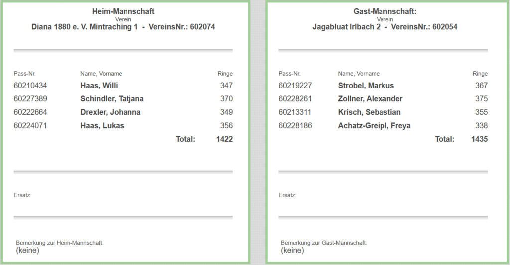 Die Gauliga-Mannschaft hat auch ihren 2. Kampf gewonnen. Mit geschlossener Mannschaftsleistung haben sich unsere Mannschaft mit 1435 zu 1422 Ringe den Rundenwettkampf für sich entschieden.