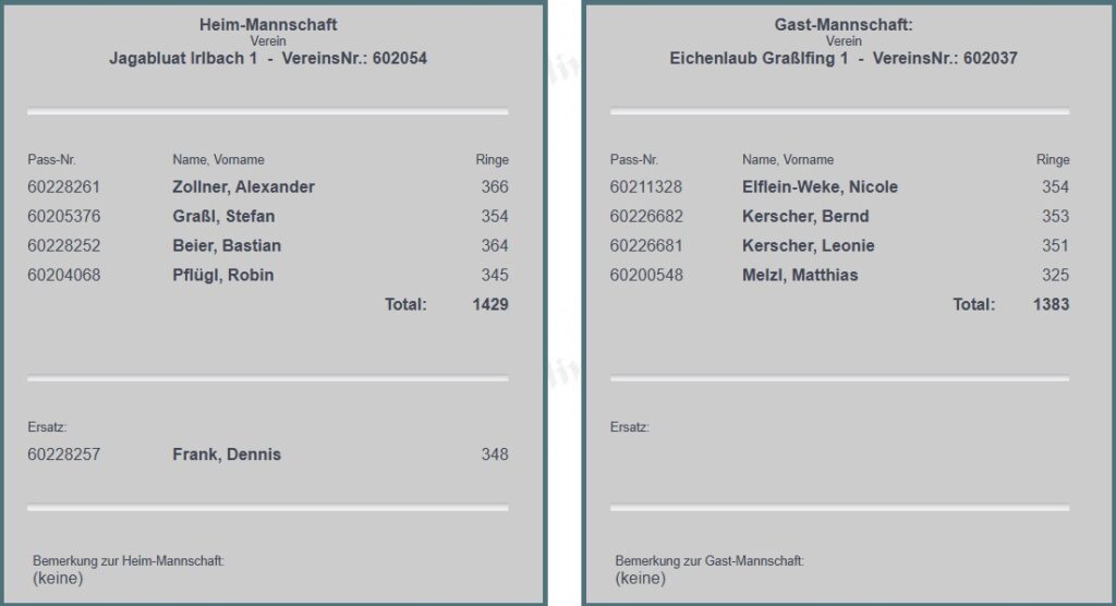 Bester Schütze des Abends war Alexander Zollner mit 366 Ringen, dicht gefolgt von Bastian Beier mit 364 Ringen. Das Team zeigte sich in Bestform und übertraf mit 1429 Ringen sogar den eigenen hohen Saisonschnitt.