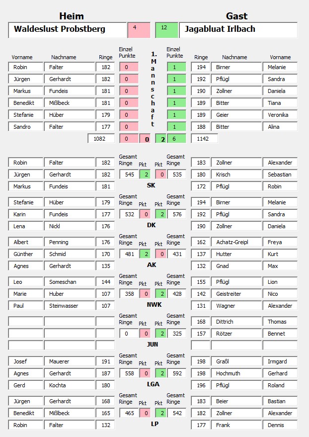 - Luftpistole (LP): Auch hier dominierten wir mit 542 zu 465 Ringen deutlich.